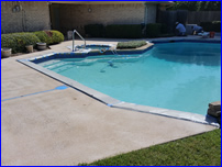Pool decks are done in spray & trowel and micro topping overlayments and the color is